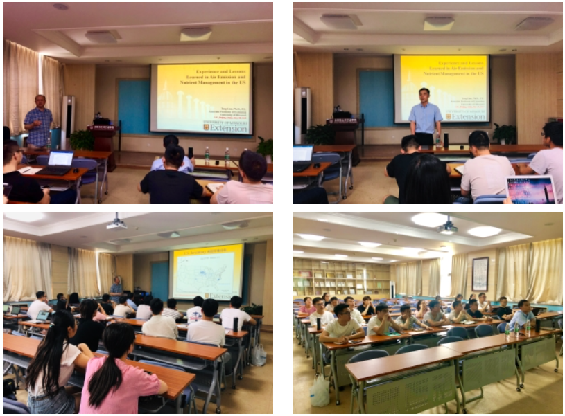 5月28日下午,美国密苏里大学副教授Teng Teeh Lim (林挺治) 受邀至水院进行学术交流并作题为"Experience and Lessons Learned in Air Emission and Nutrient Management in the US”的学术报告,永利官网农建系郑炜超副教授主持本次交流会,水院研究生和本科生20余人参加。 林挺治博士围绕美国规模化畜禽场的空气污染物排放及养分管理进行了精彩演讲,重点介绍了美国畜禽养殖业空气质量与污染物排放等所面临的问题,并结合具体案例介绍其团队在畜禽场空气质量监测和污染物减排等方面所做的研究及取得的成果。他特别介绍了其团队在养分管理方面,特别是还田设备方面进行的研究和推广工作,以及近期在疾病管理与预防、环境保护等方面与高校联合进行的培训工作。他强调,在科学研究以及工作的过程中要重视合作的重要性,以此提高时间的使用效率并拓展研究思路。随后,林挺治博士与在场师生就讲座中的相关问题进行热烈的讨论。 讲座后,林挺治博士还与相关研究生展开研究课题方面的交流探讨,在听取部分研究生和本科生的研究内容汇报之后,对其课题研究方向、试验方案等内容给出切实建议。 |